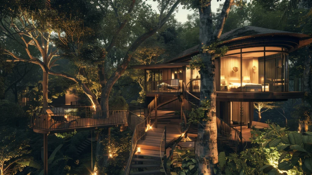 Kulüp üyelerine özel olarak tasarlanan, orman içinde konumlanmış bungalovlar; zarif mimarisi ve modern konforuyla kısa süreli konaklamalar için eşsiz bir deneyim sunar.